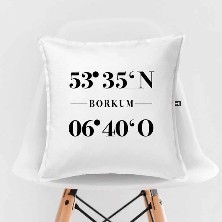 Spiekeroog – die Nordseeinsel deiner Sehnsüchte. Die Koordinaten deiner Lieblingsinsel – perfekt für dein Zuhause. Wir liefern dein Kissen immer inkl. Füllkissen. Eine originelle Geschenkidee zur Wohndekoration. Passt in jede Wohnung, ob im Wohnzimmer, Schlafzimmer, Kinderzimmer, Esszimmer, Flur, Küche oder im Büro. Auch ein ideales Geburtstagsgeschenk.