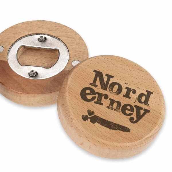 Praktischer Flaschenöffner mit Föhr-Gravur. Kann auch als Kühlschrankmagnet verwendet werden.